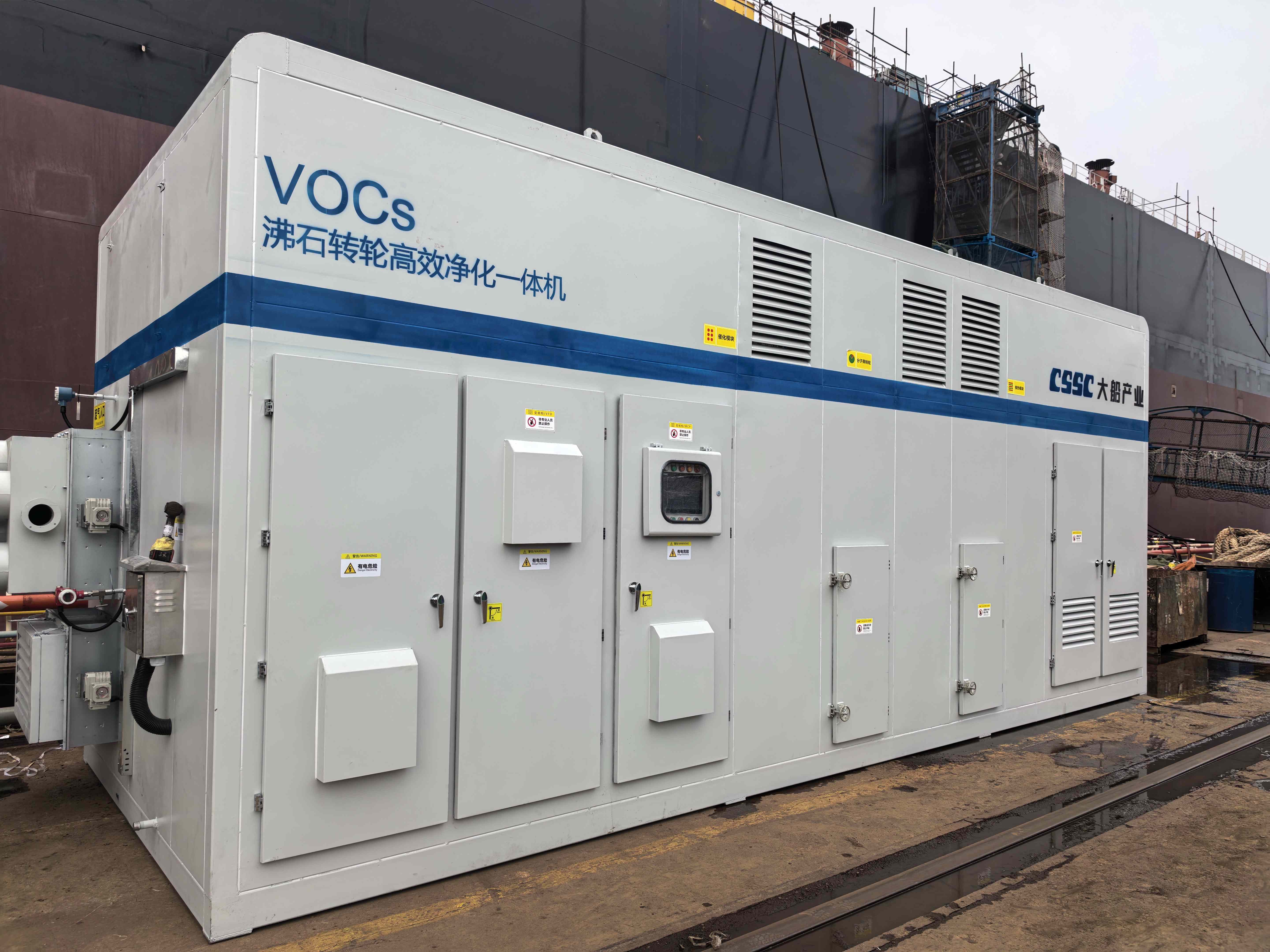承接该项目以来,公司项目团队紧密围绕客户实际需求,针对船舶制造过程中VOCs无组织排放的特点,量身打造了一套高度集成、可整体吊装的废气治理设备。该设备采用“三级预过滤+沸石转轮吸附浓缩+催化氧化焚烧+数字化智能控制”的先进工艺路线,真正实现了VOCs废气的就地收集与高效处理,有效避免了无组织排放对周边环境的影响。